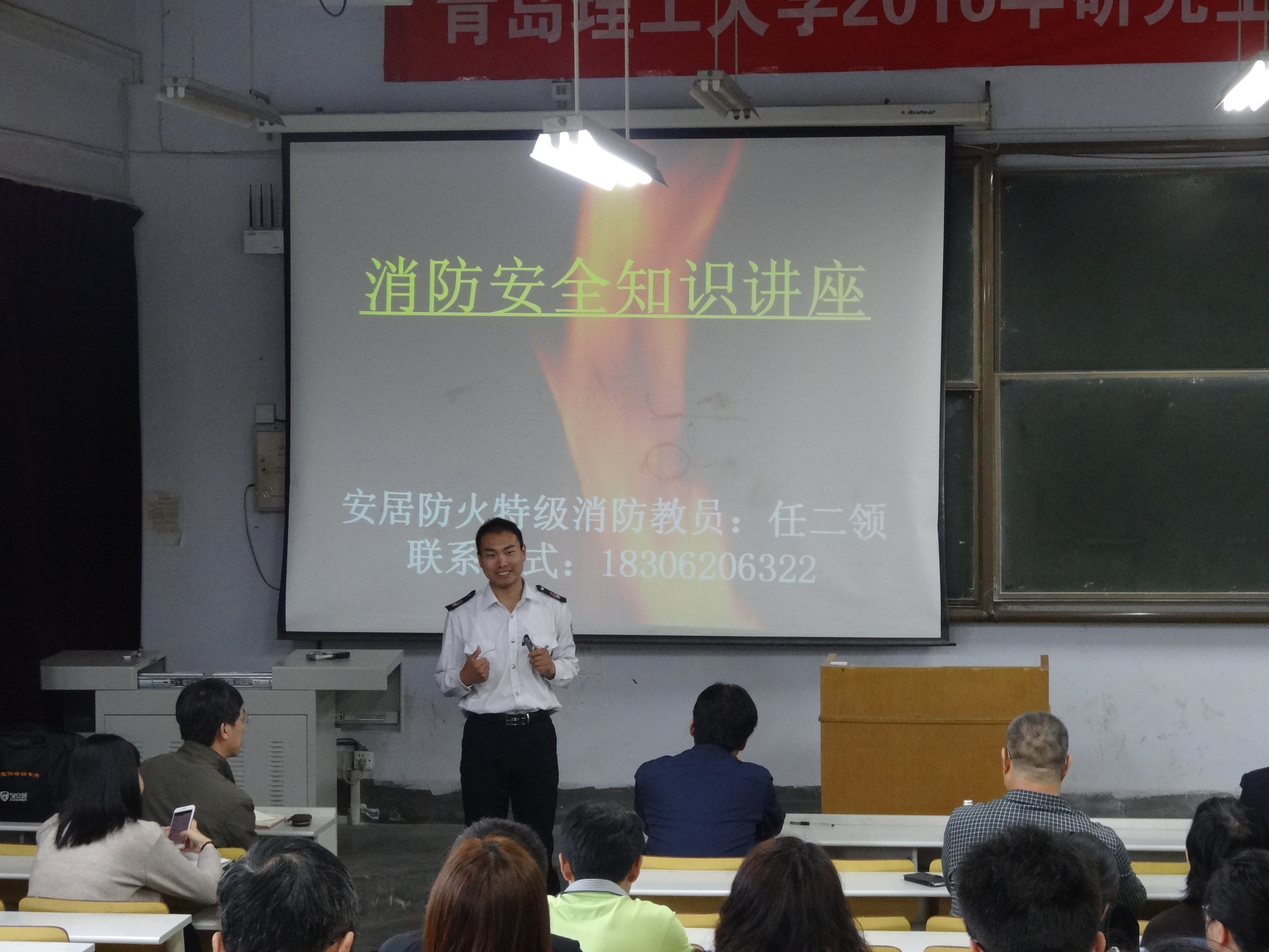 为提高对消防安全工作的重视,预防和减少火灾事故发生,近日,环境学院组织开展了消防安全知识讲座。本次讲座邀请了来自安居防火技术中心的特级消防教员任二领教官进行授课,环境学院全体教职工参加了此次讲座。