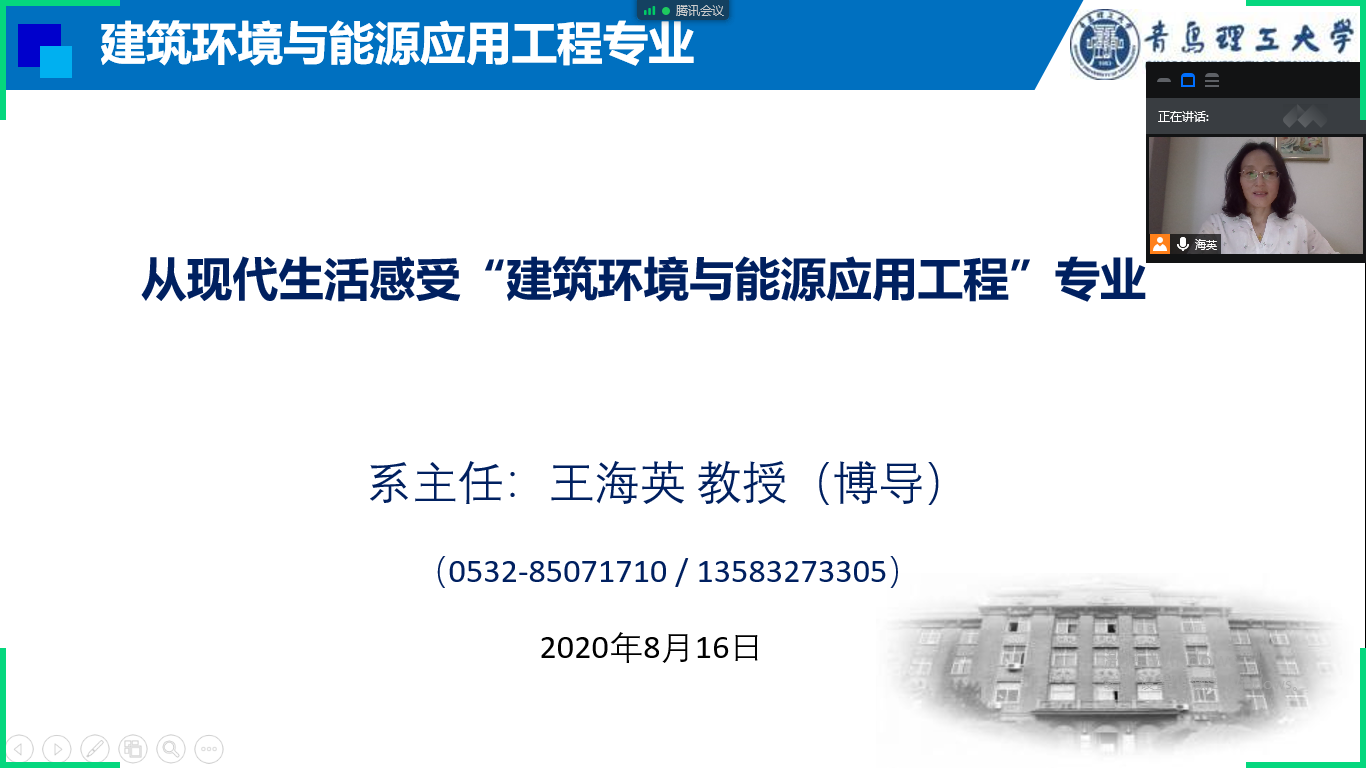 在2020年青岛理工大学科普云端讲堂活动中,yl23455永利王海英教授于8月16日在线进行了主题为“从现代生活感受建筑环境与能源应用工程专业”的科普报告。