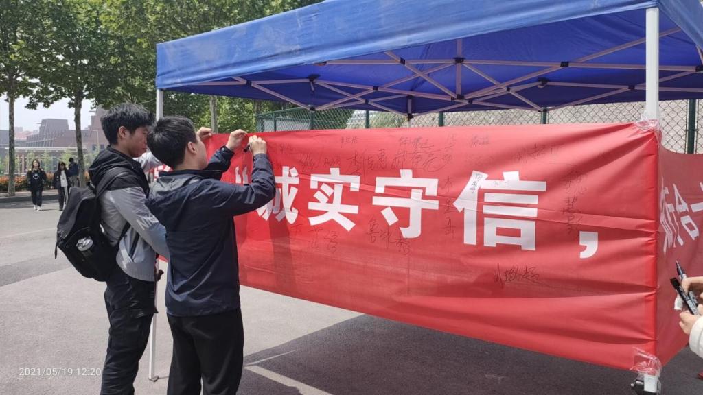 yl23455永利的同学们广泛参与,纷纷签下自己的名字,并表示不管是在日常生活还是在学术、考试以及偿还助学贷款等方面都会做到诚实守信,知行合一。
