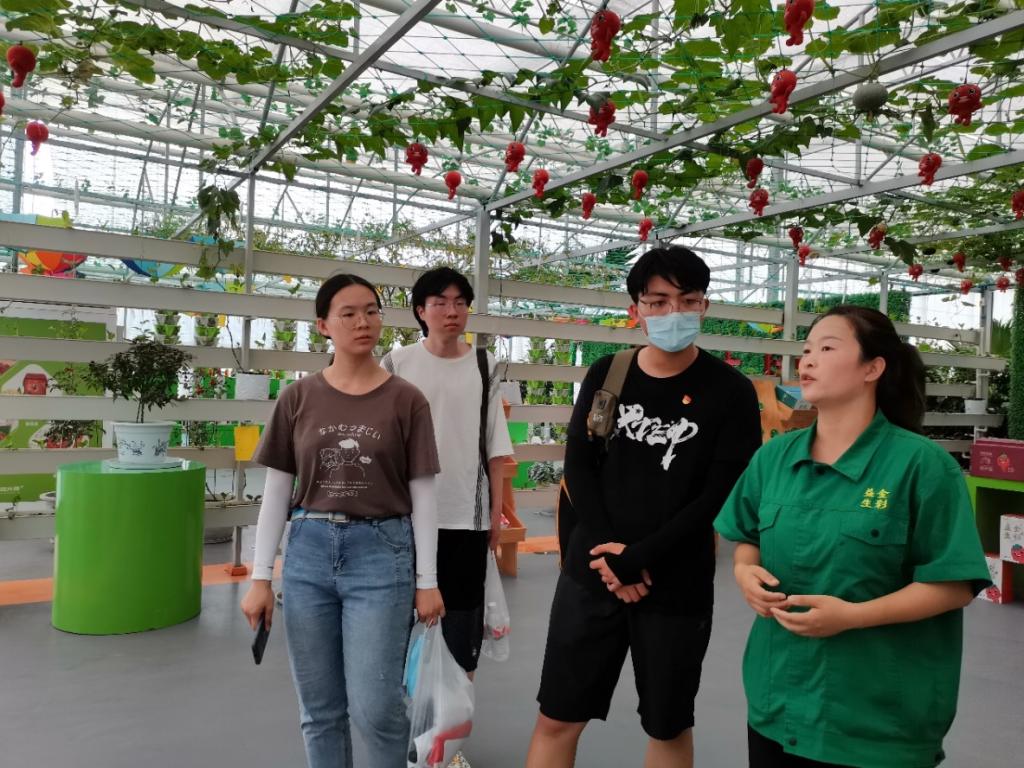 在实践过程中,团队成员首先来到了田柳镇现代农业创新创业示范基地,田柳镇是寿光市整合农村土地资源开展蔬菜集中化种植管理的起点,近10万平方米的现代化大棚代替了原先传统农作物种植区域。在工作人员的带领下,团队成员参观了两个玻璃式现代温室,并向菜农刘师傅了解认知现代温室技术。之后实践团队的同学们深入大棚,实地了解蔬菜种植、管理及菜农收入情况。该园区与本地最大的蔬菜交易市场衔接,建立多样化销售渠道,对园区实行“金融+现代农业”的新型生产模式,并以“六化”为标准,为入住创业的菜农提供全方位、高标准服务,让他们能够安心创业。这一模式不仅有效节约了土地,还提高了菜农的收入、提高了蔬菜的质量和产量,也为农业增效、农民增收趟出了一条新路。