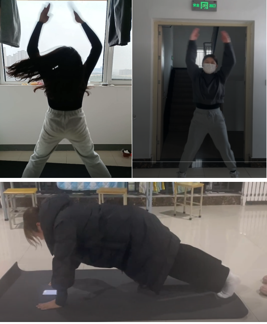 在动态平板支撑和开合跳的比赛中,参赛选手们斗志激扬,热情澎湃,虽然是一场线上比赛,但选手们的参赛热情没有丝毫消退。从计时开始的那一刻起,在短短一分钟内,双臂一次次的支撑与标准的90°弯曲、开合跳的一次次击掌与收脚,标准的动作,激昂的斗志,无不体现着理工学子奋力拼搏的精神风貌。最终,经过紧张激烈的角逐,动态平板支撑项目和开合跳项目分别有13人、14人突出重围,代表学院参加校级比赛。