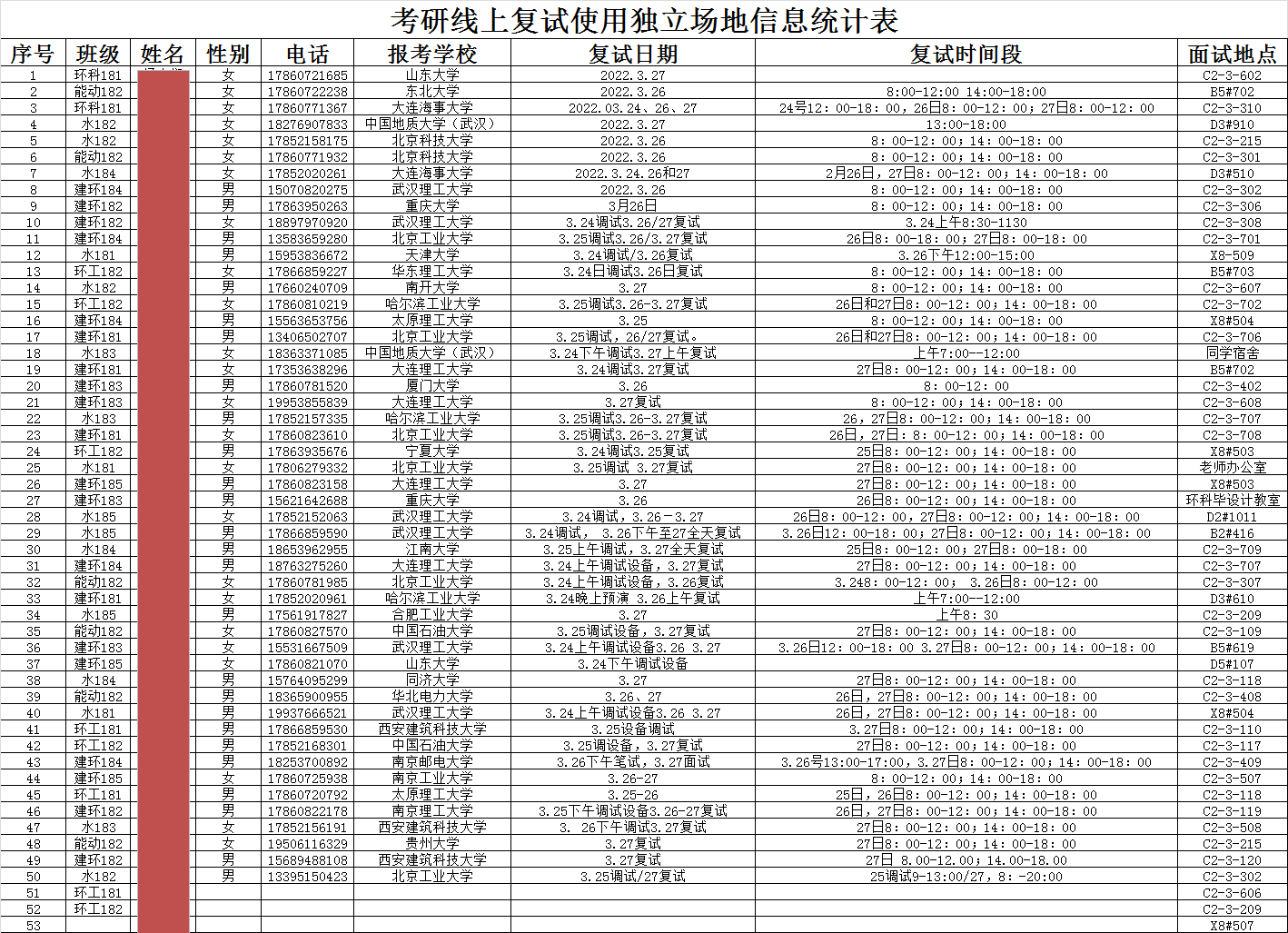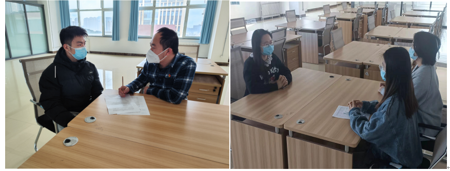 一对一服务,为学生复试保驾护航。因同学们都封闭在学校,面试时间集中,面试场地不够,面对这一问题,学院立即行动,为同学们联系到50余间宿舍、办公室、会议室使用,学院全体辅导员也积极贡献出自己的宿舍解决同学们的燃眉之急。学院安排专人根据同学们的面试时间动态调整房间的使用,使所有面试同学都有了妥善安排,并安排志愿者在学生面试期间值班确保“免打扰”,学生们纷纷表达自己的喜悦和感谢:“感谢学院、老师为我们做的一切”,“面试场地太棒了”。