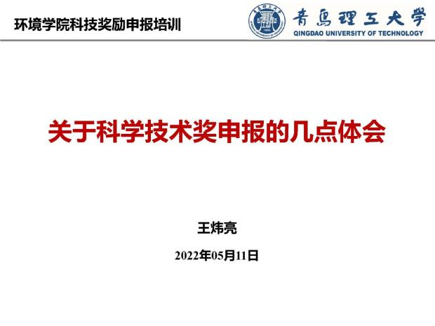王炜亮结合自己申请山东省科学进步奖一等奖经历,从申请项目的准备、申请书的撰写、成果鉴定注意事项、评审的步骤、流程等方面为各位老师做了详细讲解。张华伟首先对科学技术奖励进行了简单介绍,从行业协会奖到国家科学技术奖进行了系统的讲解,随后从科学技术奖的申报条件及科学技术奖提名书的填写两个方面进行详细的阐述,同时就奖励申报中需要注意的问题为大家做了讲解。