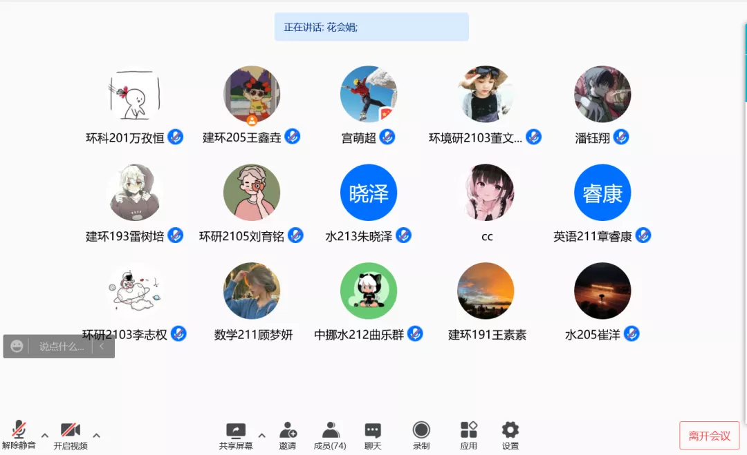 首先,花会娟对“三下乡”社会实践活动进行简要介绍,实践主题涵盖“青鸟计划”、理论普及宣讲团、党史学习教育团、乡村振兴促进团等多个方面。另外,花会娟鼓励学生结合专业特点,关注碳达峰、碳中和、黄河流域生态保护和高质量发展等国家战略,发挥环境学科特长,将所学知识投入到社会实践中。其次,由于目前国内仍有确诊病例,疫情防控形势依然严峻,花会娟提醒各实践团队时刻关注疫情动态,不得前往中、高风险地区进行社会实践,在低风险区活动时,要做到戴口罩、勤消毒,做好个人防护,团队成员如因疫情原因无法实地进行实践活动,可参与团队线上工作进行云实践。最后,花会娟强调,各实践团队要积极与指导老师沟通,确保实践活动安全有序进行。完成实践活动后,各团队应完整保存记录活动的文字、视频、图片等资料,充分发挥主观能动性通过制作短视频、H5、调研报告等形式展示实践成果,学院也将通过微信等新媒体平台对优秀实践团队进行宣传。