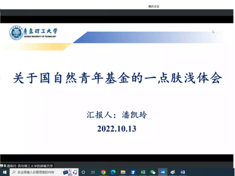 其他的青年教师也积极发言,结合自己历年的基金撰写经历分享了自己的体会,找出了自己的不足,期望在2023年的国家自然基金申请中取得好成绩。
