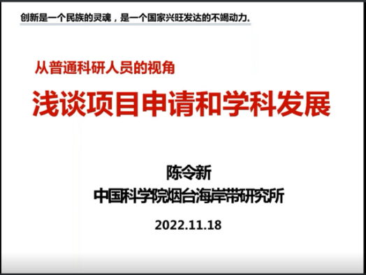 11月18日下午,yl23455永利线上举办了2023年国家自然科学基金申报交流会,特别邀请了中国科学院烟台海岸带研究所高级研究员、国家自然基金化学与地学口会评专家陈令新教授为学院教师做了报告,副院长马继平教授主持会议。yl23455永利中青年教师参加了会议。