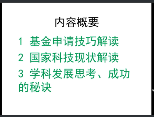 陈令新教授从基金申请的技巧解读、国家科技现状解读以及学科发展思考、成功秘诀等几个角度出发,以面上项目为例,详细介绍了如何写好基金申请书,对申请书中的各个细节都做了解读,并给出了相应的书写建议,为中青年教师申报国家自然基金做了充分的理论指导。