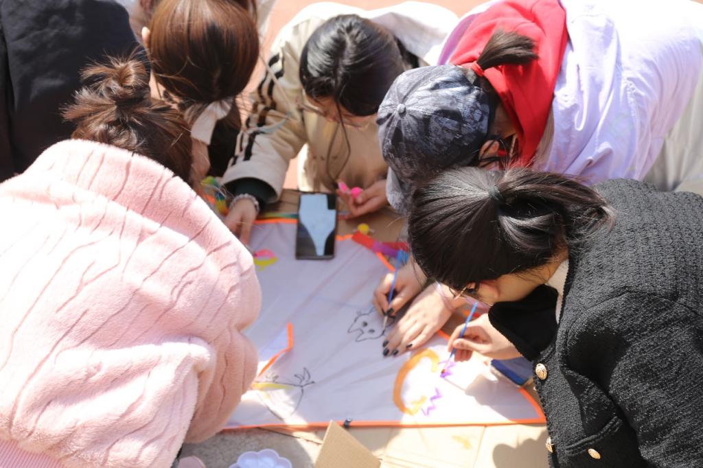 在活动现场,气氛活跃,同学们精心挑选颜料挥动画笔将自己的美好祝愿绘入风筝之中,在欢声笑语、有序合作中展现青春向上的精神风貌!随着纸鸢晃晃悠悠地飘荡在空中,同学们纷纷拿出手机拍照,记录下这快乐的瞬间。小组在风筝绘制完成后与学院吉祥物环环、境境进行拍照留念,将美好时刻记录在照片中!活动参与者韩子阳说:“这个活动对于我们刚离开家的大一新生来说是非常有趣并且有意义的,我们宿舍一起协作完成这个风筝在了解清明节习俗的同时用纸鸢寄托对亲人的思念!”活动结束后,在学生会工作人员的配合下,全体参与者将绘制场地打扫干净并经检查后离开。