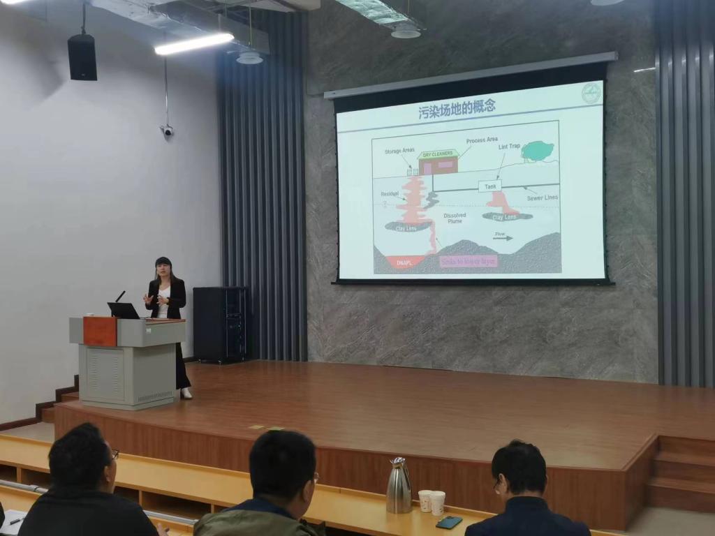 宋昕结合自己在国内外的学习、工作经历,围绕新污染物PFASs详细阐述了典型垃圾填埋场周边环境中PFASs的赋存特征、PFASs-氯代烃复合污染、热激活过硫酸盐的原位修复研究,以及土壤PFASs污染修复面临的挑战。报告中分享了团队近些年研究垃圾填埋场周边地表水、底泥、地下水、土壤和植物中PFASs赋存水平、传输规律和健康风险, PFASs典型替代物HFPO-DA在包气带中的迁移规律,复合污染场地氯代烃对PFASs赋存与迁移的影响等方面的最新成果。报告讲解生动形象,内容新颖全面。互动环节,在场师生踊跃提问,宋昕就污染土壤的修复过程及环境影响等问题与在场师生进行了深入交流与探讨,现场气氛融洽热烈。