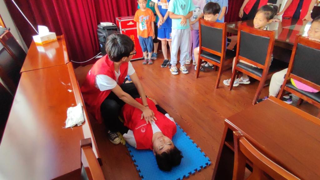 7月12日上午“防溺水安全小课堂”拉开了夏令营的序幕,团队志愿者从“如何预防溺水、如何辨别溺水、如何正确施救、如何自救”等方面详细讲解相关安全知识,通过集体观看防溺水视频、趣味互动问答、急救动手实操等方式,孩子们牢记防溺水措施“六不准”,熟练掌握自防自救知识,提高自防自救能力,有效避免溺水事故的发生。这种寓教于乐的方法不仅提高了孩子们的自我保护意识,更有效地减少了溺水事故发生的可能性。