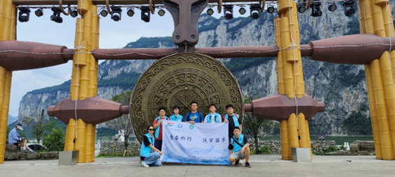 沿着盘山公路来到乌江源百里画廊,实践团被眼前壮丽的景色惊艳到了。起伏的山脉、蜿蜒的江流和蓝天白云交相辉映,构成了一幅大自然的壮丽画卷。在这里,实践团偶遇西南大学研究生社会实践总队,共同开展了一场行走的经验交流分享会。在交流中,大家纷纷表示:“深刻感受到锦绣山河,国富民强,人民幸福。”