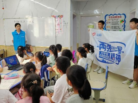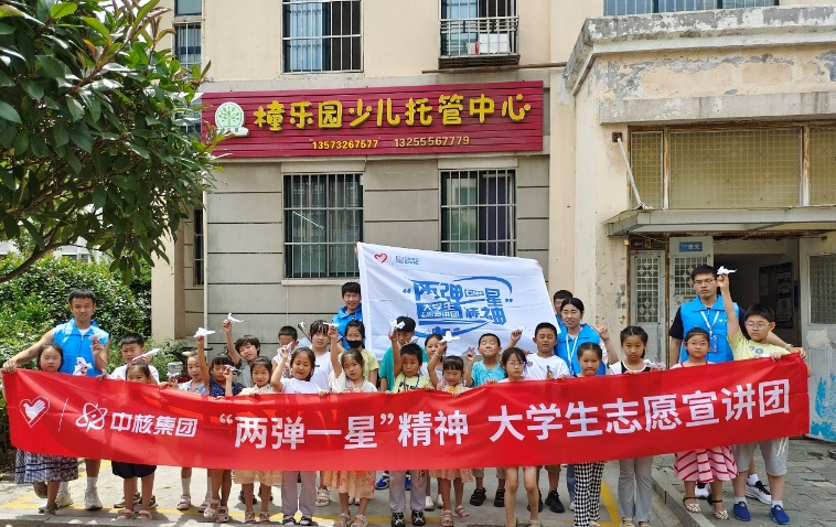 为响应习近平总书记关于大力弘扬“两弹一星”精神、强化使命担当的号召,动员广大师生积极学习“两弹一星”精神,推进红色基因传承。2023年7月17日,青岛理工大学新时代火花志愿宣讲团成员一行前往橦乐园少儿托管,开展“两弹一星”精神志愿服务宣讲活动,志愿者们结合专业知识,围绕“什么是核?”、核技术的应用、我国“两弹一星”发展的艰苦历程几部分展开宣讲。