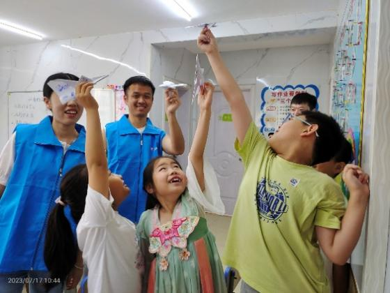 最后来到手工制作环节,志愿者们引导小朋友们通过手工制作自己想象中的核动力船舶、核动力飞机……有的小朋友举着自己的作品说“以后他要真的造出这样的核动力飞机”。志愿者们通过绘画与手工制作的方式,激发孩子们对我国未来核事业发展的畅想。在活动结束的最后,志愿者和小朋友们放飞了承载着属于自己的天真与梦想的纸飞机。