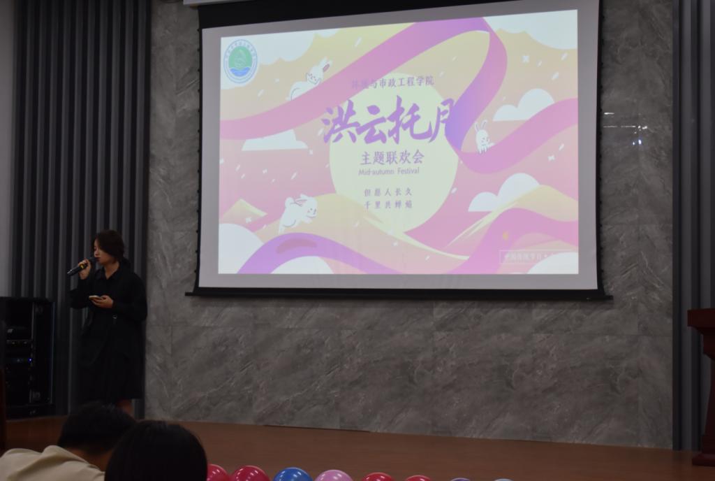 中秋佳节,丹桂飘香。为弘扬中华民族传统文化,增强在校学生的归属感,提升中秋佳节的氛围感,加强对学生的人文关怀,9月29日下午,环境与市政工程学院举办“洪云托月”中秋主题联欢会。学院党委副书记、副院长隋学智、副院长刘龙,2023级新生辅导员何珊珊、罗荣一同与同学们共度佳节。