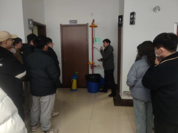在培训开始时,郝田宇老师向同学们介绍了实验楼内紧急喷淋装置和洗眼器的使用方法和注意事项,并进行了操作演示。接着,他讲解了消防栓和灭火器的使用方法,并在室外演示了如何使用灭火器扑灭初期火灾,并指导参与培训的同学亲自动手操作灭火器。