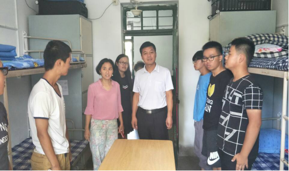 新生见面会后,董典同书记、周红燕副书记、张梅芳老师、花会娟老师一起深入学生宿舍,与学生进行深入的沟通与交流,对新生的生活、学习问题进行了解答。