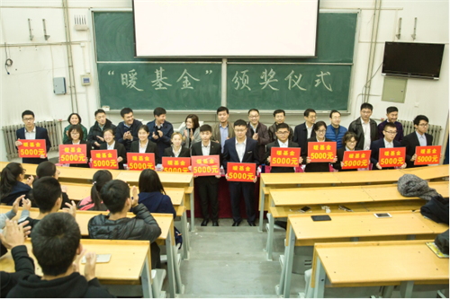 颁发仪式上,董典同代表学院向慷慨解囊的校友们表达由衷的感谢。他指出“暖基金”的设立是环境学院暖通专业校友回报母校、心系教育、关爱社会的直接体现。你们的慷慨助学、乐善好施发扬了扶贫济困的中华传统美德,是对尊重知识、刻苦钻研的激励,是对开拓进取、崇尚美德的赞许,是对广大校友和师生的感召与鼓舞。你们的行为更好地诠释了“饮水思源”的真正含义,也吸引了更多的校友加入到爱校荣校、资困助学工作中来。