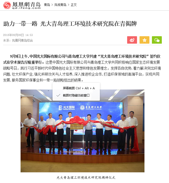 9月9日上午,中国光大国际有限公司与青岛理工大学共建“光大青岛理工环境技术研究院”签约仪式在学术报告厅隆重举行。这是中国光大国际有限公司与青岛理工大学共同积极响应国家生态环境发展战略号召,践行习近平新时代中国特色社会主义思想和绿色发展理念,发挥各自优势,着力解决突出环境问题,壮大环保产业,强化科研攻关与人才培养,深入推进校企合作,打造环保领域的高端平台,实现共同发展,服务国家环保事业和一带一路战略结出的硕果。