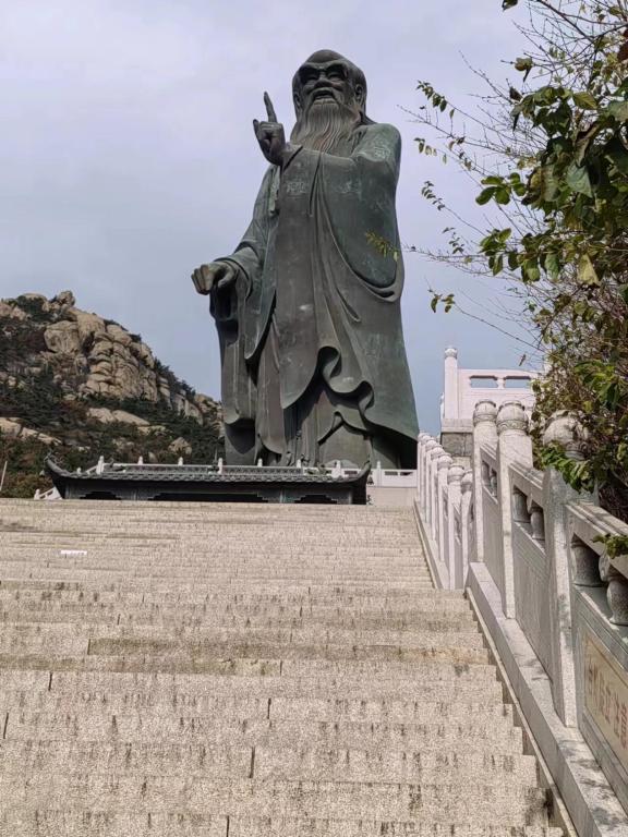 这次去了太清宫,终于来到老子铜像下面,认真观摩老子像。顺着山路来到海边,远远的就可以看到老子像,老子像背靠崂山,面朝大海,从他的角度,正是看护着整个太清宫。老子像是根据画圣吴道子所画而雕,目光深邃,慧眼如炬,左手指天,右手指地,意谓“开天辟地,唯道独尊”,旁边是老子的坐骑石牛,雕刻的栩栩如生。这股仙风道骨的气息令我感到钦佩神往。