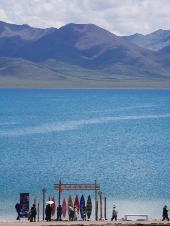 西藏的湖泊宁静,倒映着周围的雪山和蓝天,美不胜收,是西藏人民对圣地的向往, 纳木错像一面巨大的镜子,镶嵌在藏北草原上。徒步绕纳木错转湖一圈需要一周时间,这对我来说,宽到犹如观湖像看海一般。登上湖边的一座小山丘,上面挂满了祈福的经幡,五颜六色,随风飘扬在蓝天碧水之上, 纳木错,保持着自然原始生态,是无数朝圣者心目中绝妙无比的香巴拉,真心希望这片美丽而安静的天湖,能够永远成为人与自然和谐相处的天堂。抬头远望,茫茫原野与辽阔幽深的天湖自然地融成了一个和谐的整体,让人目不暇接的美景一次次刷新着我对美的定义。漫步在扎西半岛优美的弧形湖岸边,我抛开一切烦恼,用心去感受一切美丽。