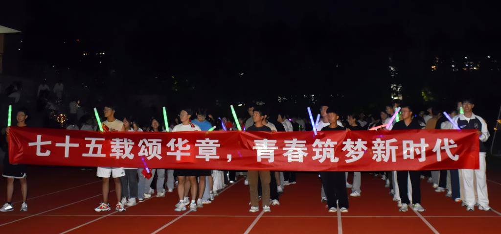 “青年强则国家强,要勇做青春的追梦人与时代的奋斗者,让青春在火热的实践中绽放绚丽之花。”此次活动不仅是一场美妙绝伦的视觉盛宴,更是一次爱国情怀的绽放。熠熠星光点亮漫漫长夜,亦如当年一个个青春力量照亮新中国来时的路。时代的接力棒已传到我们手中,青年当不负韶华,努力奋斗,为祖国的建设添砖加瓦。75年的风雨历程,让青春染绿神州,让荣光永驻华夏,理工学子用积极昂扬的行动绽放青春色彩,弘扬体育精神,庆祝祖国华诞!(撰稿:纪宇;审核:隋学智)