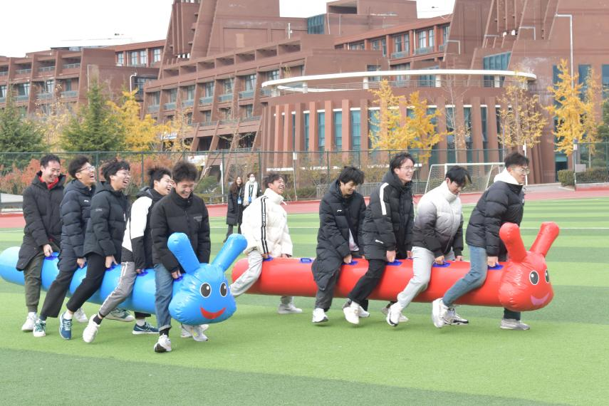 趣味运动会项目丰富多彩,包括团队战鼓、抢滩登陆、合立筑塔、毛毛虫比赛、数字城堡、拔河等。比赛过程中同学们团结一致,共同努力,赢得比赛。整个比赛不仅增添了同学之间的默契,更增添增进了同学们之间的友谊。