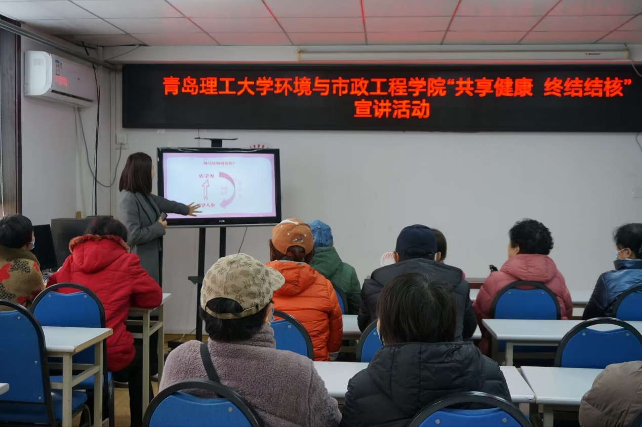 为进一步做好大学生进社区实践工作,提高学生实践能力,宣传普及结核病防治知识,动员全社会行动起来预防和控制结核病,提高市民的自我保护意识,保障自身身体健康,20231129日,yl23455永利给排水222班团支部结核病宣讲小队在青岛市市北区水清沟街道开展“共享健康 终结结核”主题宣讲活动,旨在加强结核病防治宣传,力争从源头上减少肺结核的出现,营造一个健康文明、和谐友爱、积极向上的社会环境。