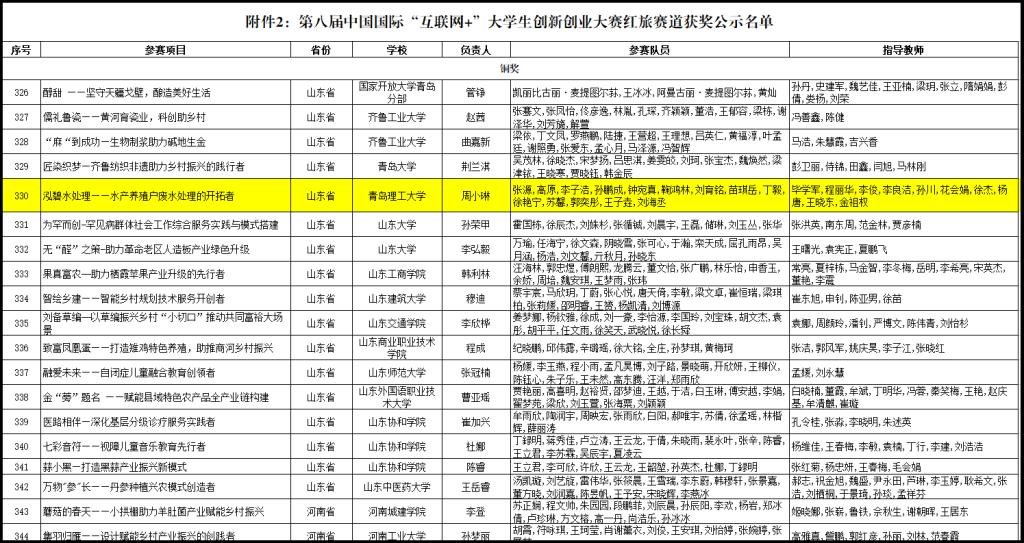 第八届中国国际“互联网+”大学生创新创业大赛是由教育部等12个中央部委单位联合各省市教育部门共同举办的高层次学科竞赛。本次大赛自2022年4月份报名开启至比赛开始,共聚集了国内外111个国家和地区、4554所院校的340万个项目、1450万余人次报名参赛,参赛人数、参赛项目数、参赛高校数均创历史新高。由学院学生周小琳、张源、高原、李子浩、孙鹏成、钟宛真、鞠鸿林、刘育铭、苗琪岳、丁毅、徐艳宁、苏馨、郭奕彤、王子垚、刘海丞15名同学的红色筑梦之旅项目《泓碧水处理—水产养殖户废水处理的开拓者》在经过精心组队、学院选拔培养、学校辅导打磨等环节,突破省赛,最终斩获第八届中国国际“互联网+”大学生创新创业大赛红色筑梦之旅赛道全国铜奖。
