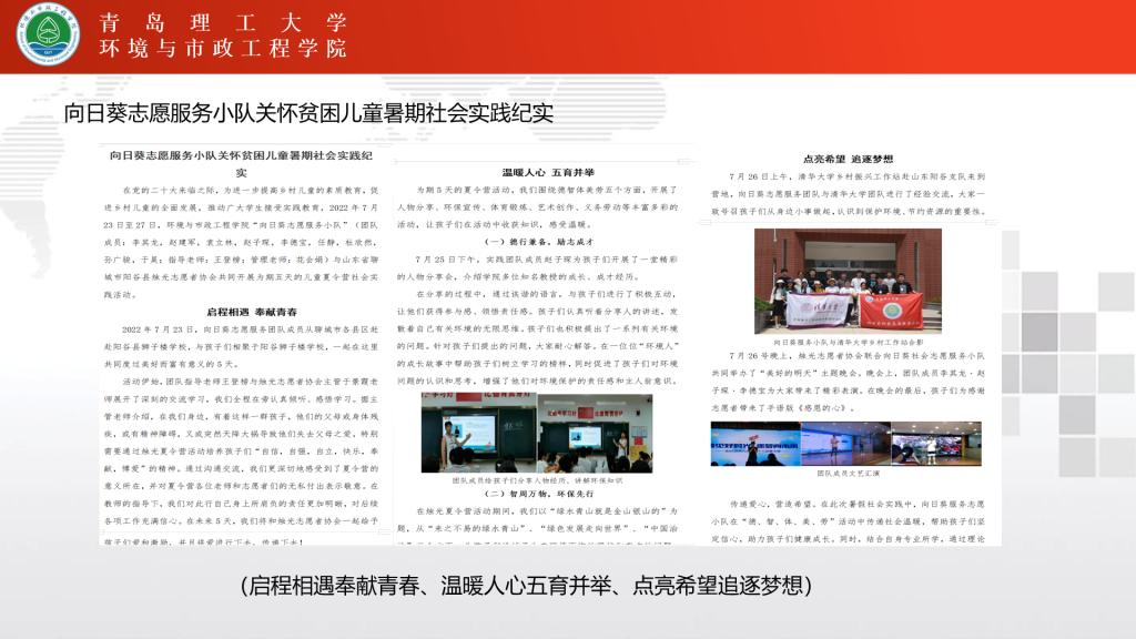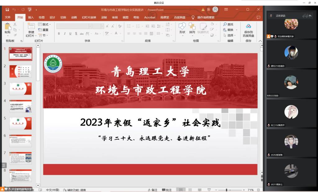 其次,花会娟鼓励学生结合专业特点,发挥环境学院各专业优势,积极开展以黄河流域生态环境保护和高质量发展为主题的社会实践活动。此外,由于目前国内疫情形式仍不明朗,各地主要流行毒株千差万别,花会娟要求各团队在开展社会实践时务必佩戴口罩、勤消毒,做好个人防护,鼓励创新实践载体,以学生家乡所在地为主,就近就便开展个人和团队调研。最后,花会娟展示了往期优秀社会实践团队在各大媒体的投稿,充分展现了环院师生心系社会,学以致用,乐于在社会课堂中“受教育、长才干、作贡献”。花会娟还强调各实践团队要踏实认真开展实践活动,在活动过程中保留详实的图文及视频资料,活动结束后,做好调研报告的撰写和及时进行相关宣传。