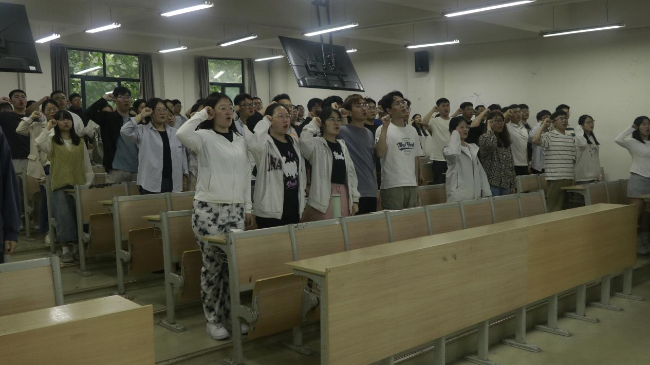 誓词铿锵燃“灯火”,初心不改若“明镜”。为进一步提高毕业生党员的党性修养,激励党员们不忘来时路,启航新征程,学院学生党支部开展“重温入党誓词”主题党日活动。“我志愿加入中国共产党,拥护党的纲领,遵守党的章程,履行党员义务……”在领誓人的带领下,毕业生党员一起高举右手,庄严宣誓。毕业生党员张峰鸣说到:“在今后的工作、生活中,自己要不断增强使命感,以昂扬的士气、进取的心态和争先创优的精神践行入党誓词,以实际行动去立足本职、争当先锋。”