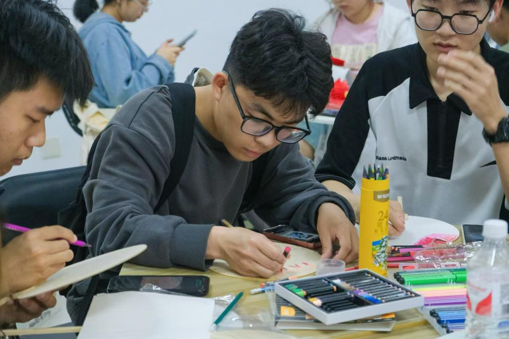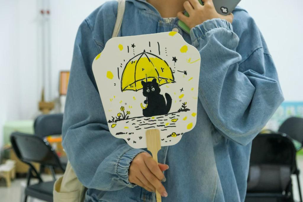 轻执团扇、诗意满怀。一场别开生面的团扇DIY盛宴,同学们尽情发挥创意和想象力,使用彩绘笔亲手制作出属于自己的团扇作品。在炎炎夏日,手执一把团扇,不仅是为了驱散暑气,更是一种文化的传承与生活的艺术。团扇在手中轻轻转动,每一次挥动都是对传统美学的致敬,每一次停歇都是对静谧时光的品味。