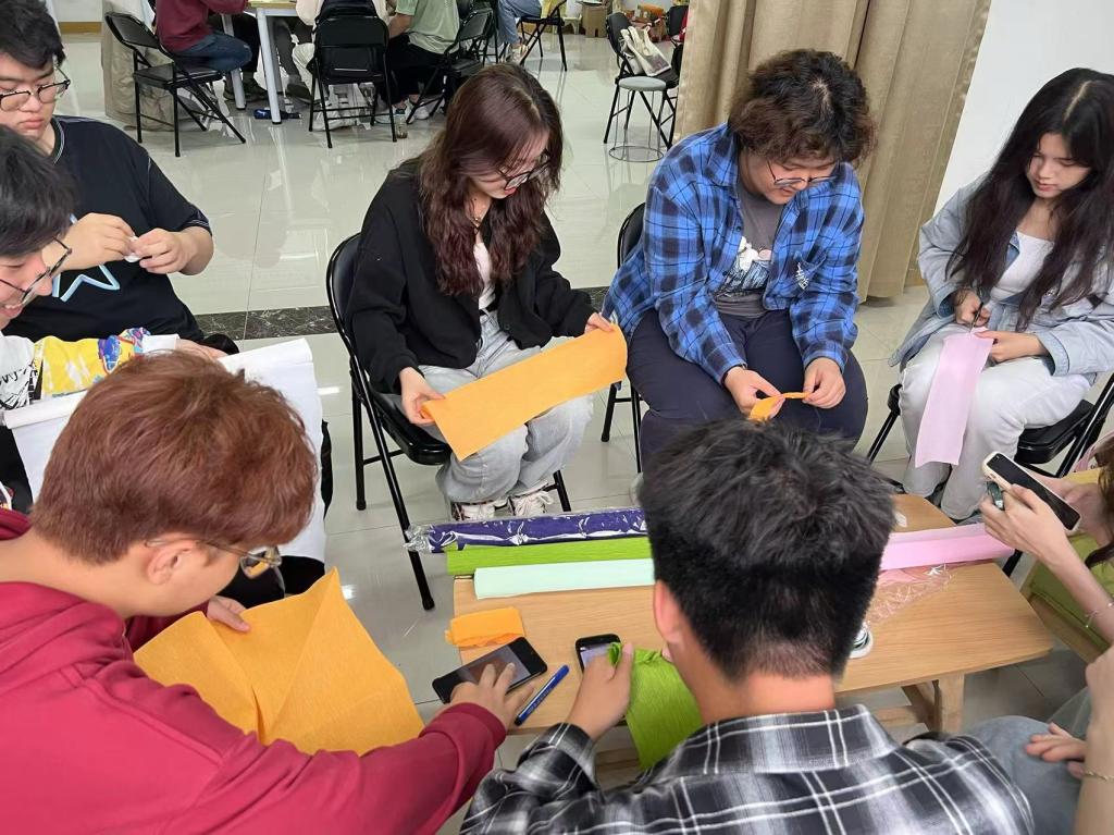 为塑造健全人格,丰富精神生活,促进同学们的身心全面健康发展,yl23455永利绿蕊心理协会于5月21日下午在心理活动室开展以“剪纸”、“团扇”、“纸艺花”为代表的心理美育活动。同学们通过制作传统手工艺品,提高审美能力和动手能力,促进心理健康。