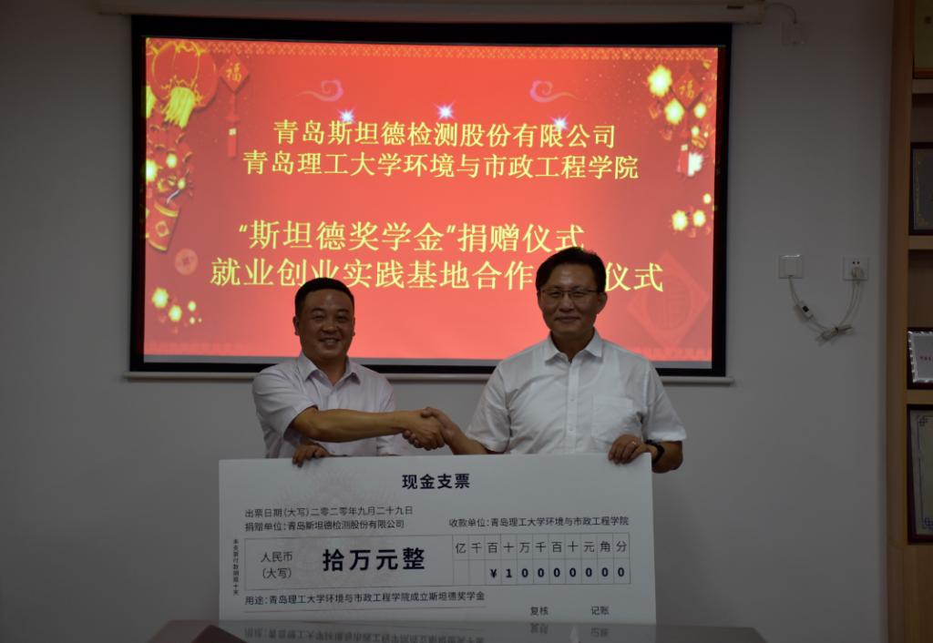 yl23455永利与青岛斯坦德检测股份有限公司举行“斯坦德奖学金”捐赠和就业创业实践基地签约仪式