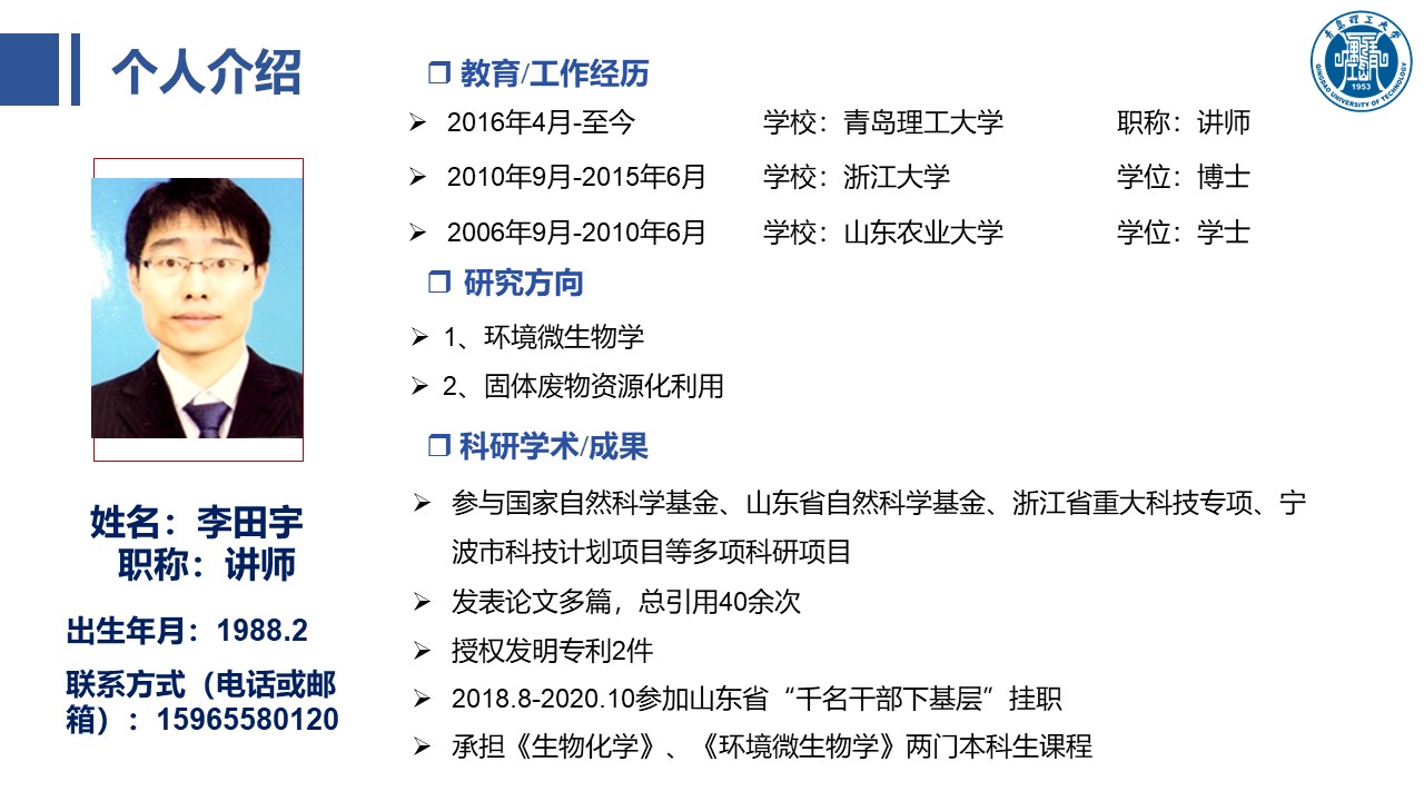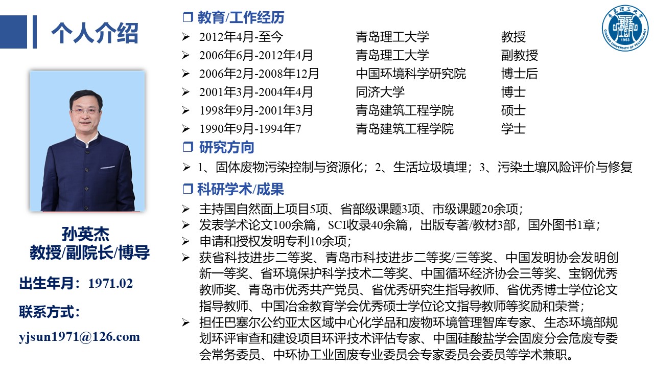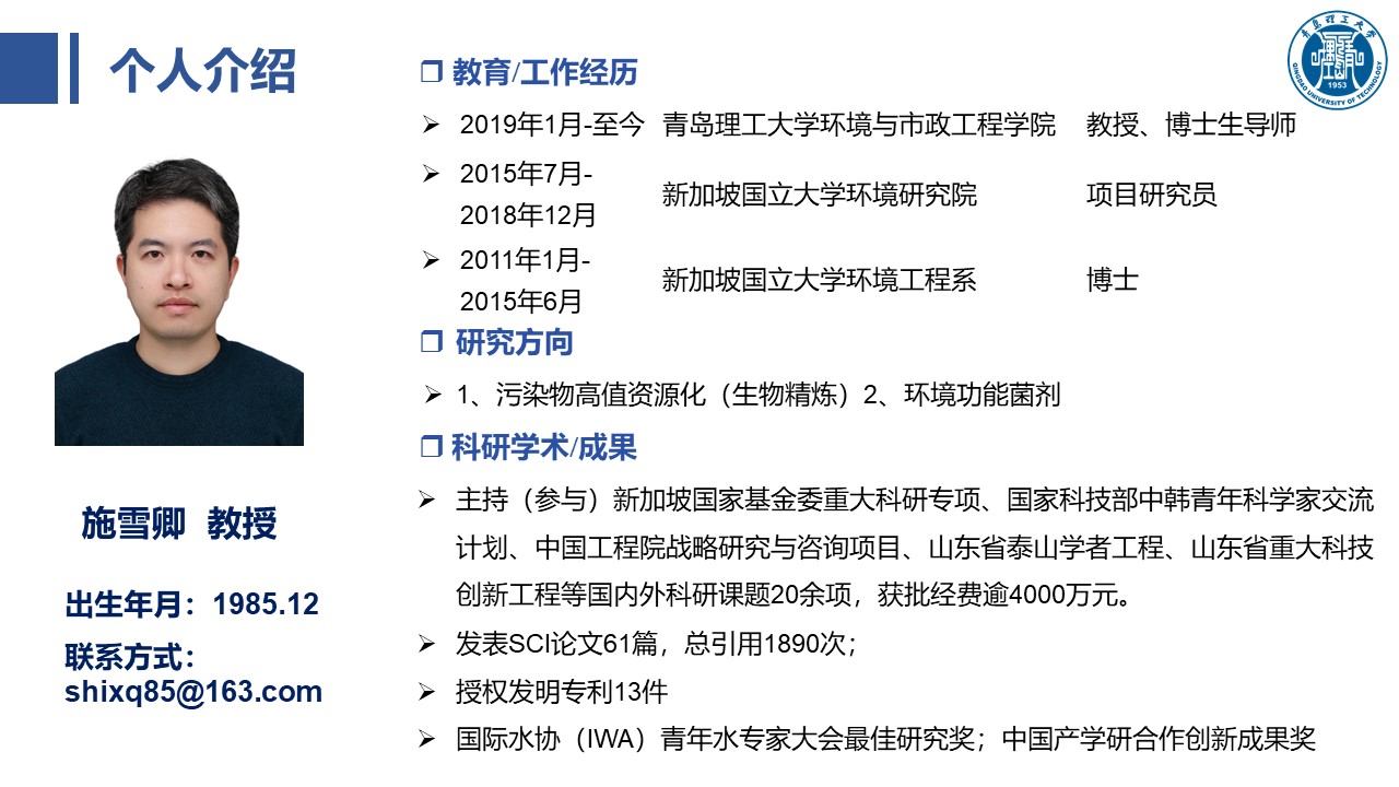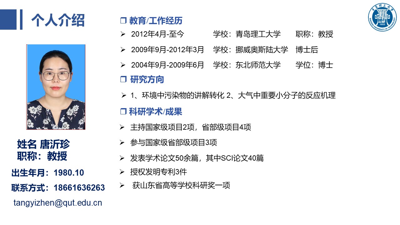 滨海土壤污染修复及新兴污染物的环境行为团队: